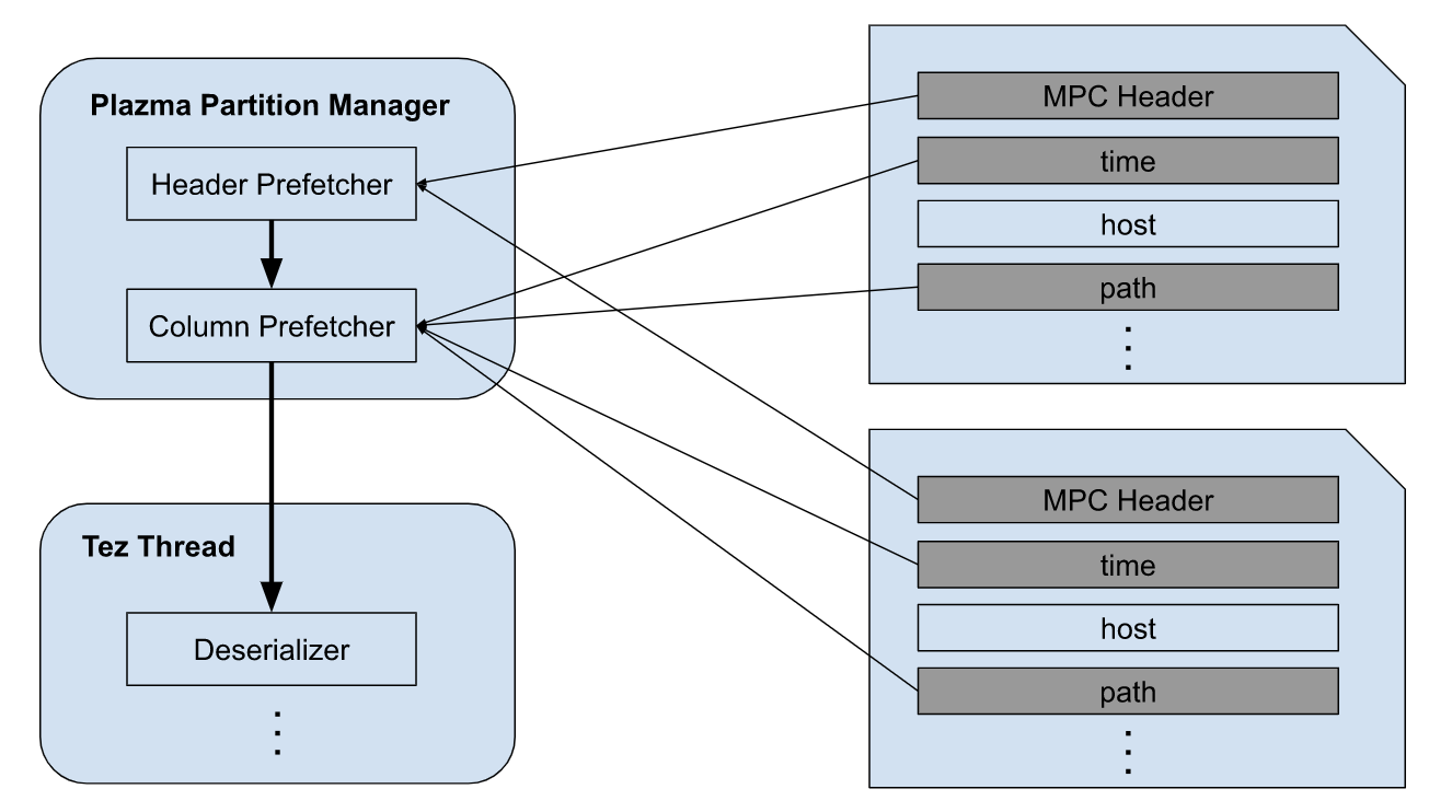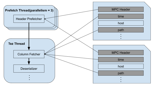 - Column Prefetcher reads column blocks in parallel once its header gets ready