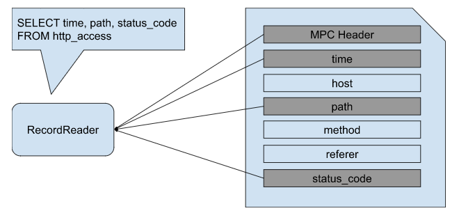 Modern big data systems typically store files using a columnar storage format. Parquet or ORC are well-known examples. Treasure Data developed our columnar storage format, MPC1, designed for schema on read. Simply speaking, MPC1 has N + 1 blocks in each file, one header block and N column blocks.