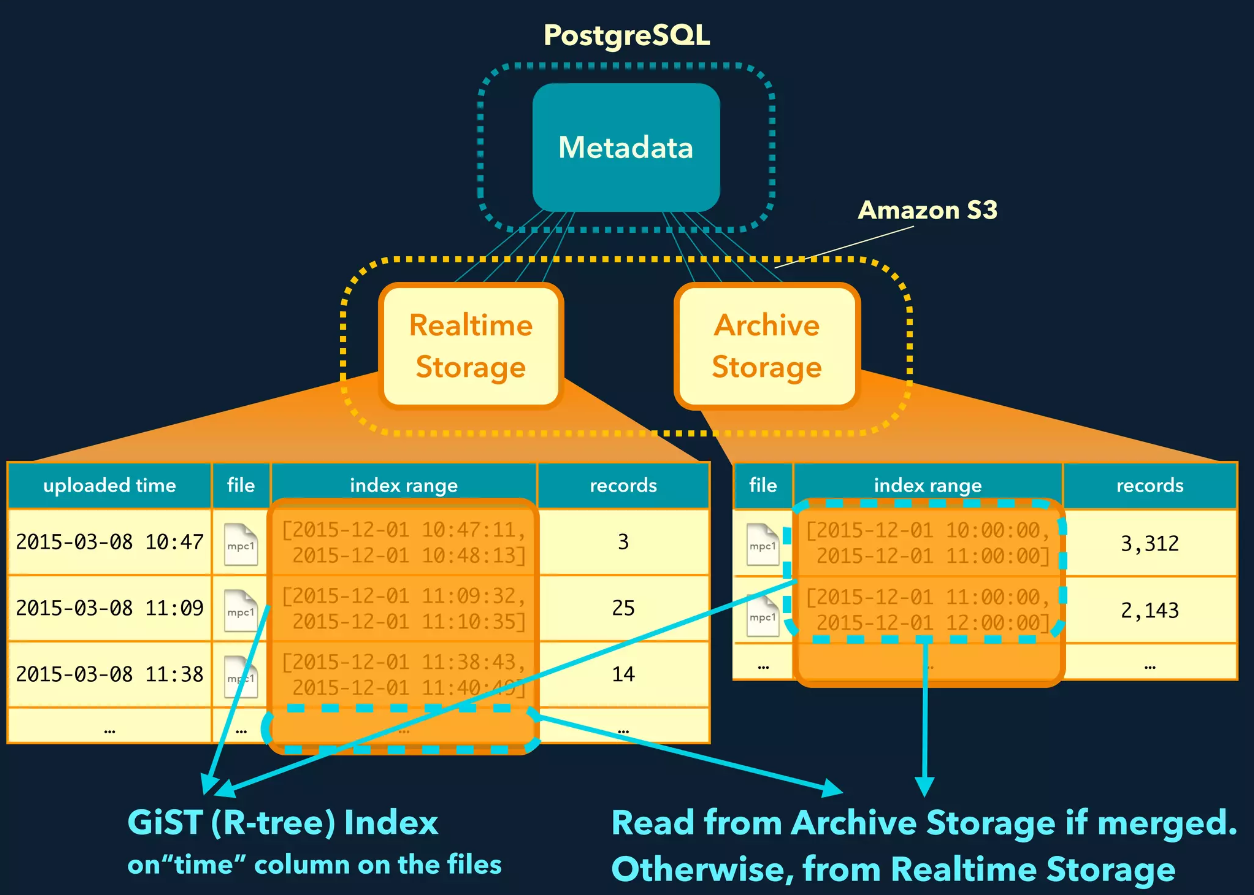 We store records in our tailored storage called Plazma. Plazma is composed of two types of storage, Realtime Storage and Archive Storage. Typically, customers continuously send us records through a log collector such as Fluentd, and Treasure Data Import API ingests the records into Realtime Storage. In order to avoid fragmentation, Plazma periodically merges small S3 objects in Realtime Storage based on partition keys, and then moves the merged ones to Archive Storage. Customers don’t have to care about how or where records are stored because we transparently perform compactions and partitioning. In some scenarios, Hive and Presto have to scan many S3 objects. For example, they may have to read a large number of pre-merged S3 objects in Realtime Storage. In another case, full-scan queries might have to access a wide range of partitioned S3 objects.